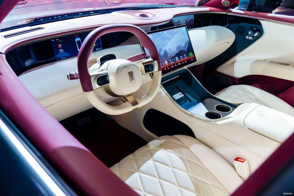 无论是碟翼式前脸还是独创的 F 形标志性大灯与星环光幕,设计上的辨识度很高,艾维亚没有跟风无差别封闭式前脸,形成专属电动化表情。侧面也很特别,垂直流体后舷窗 + 帆式尾翼,极具张力的车尾线条,升降随速感应尾翼,兼顾美观与空气动力学,3 颗激光雷达与感知硬件完全嵌入车身,没有突兀的 "补丁" 设计,实现科技与美学的平衡。