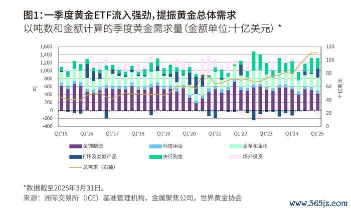 黄金ETF需求复苏,推动一季度黄金投资需求总量达552吨,同比增长170%,创下自2022年一季度以来的最高季度水平。